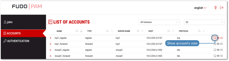 Notes are created by the system administrator and they provide additional information on server access.