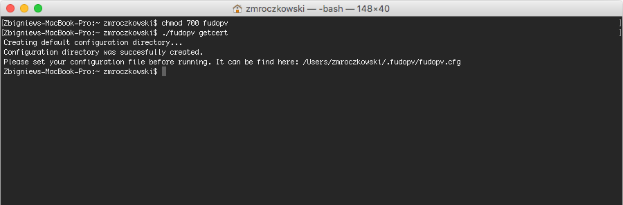 fudopv getcert, aby zainicjować konfigurację narzędzia.
