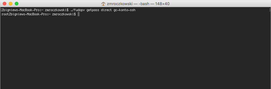 fudopv getpass direct <nazwa_konta>, aby pobrać hasło do nawiązania bezpośredniego połączenia z serwerem.