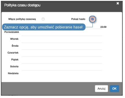 HasłolubHasło jednorazowe. - Dla uwierzytelnienia hasłem, wprowadź hasło w polach Hasło i Powtórz hasło.