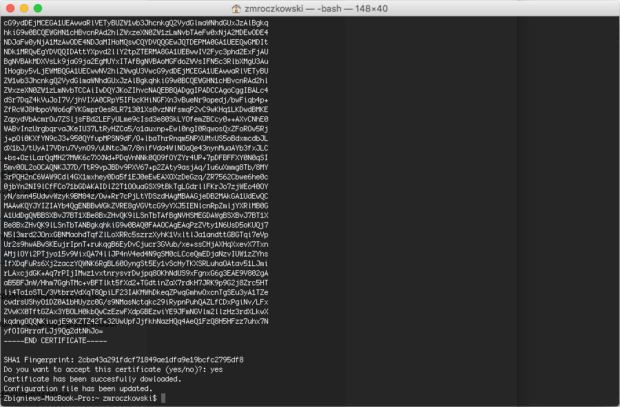Po prawidłowym wykonaniu komendy, ścieżka certyfikatu w pliku konfiguracyjnym zostanie automatycznie uzupełniona.