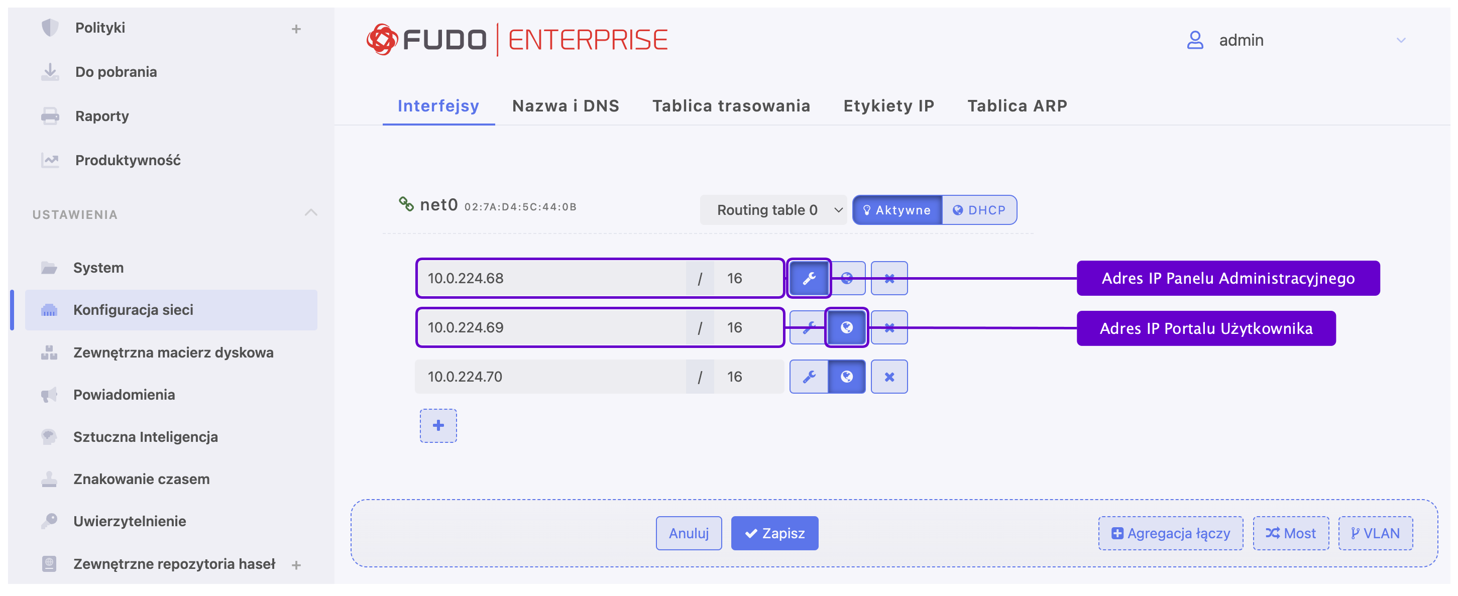 Adres IP Portalu Użytkownika można uzyskać od administratora systemu lub z menu > w Panelu Administracyjnym. Aby dowiedzieć się więcej, zapoznaj się z rozdziałem Konfiguracja ustawień sieciowych.