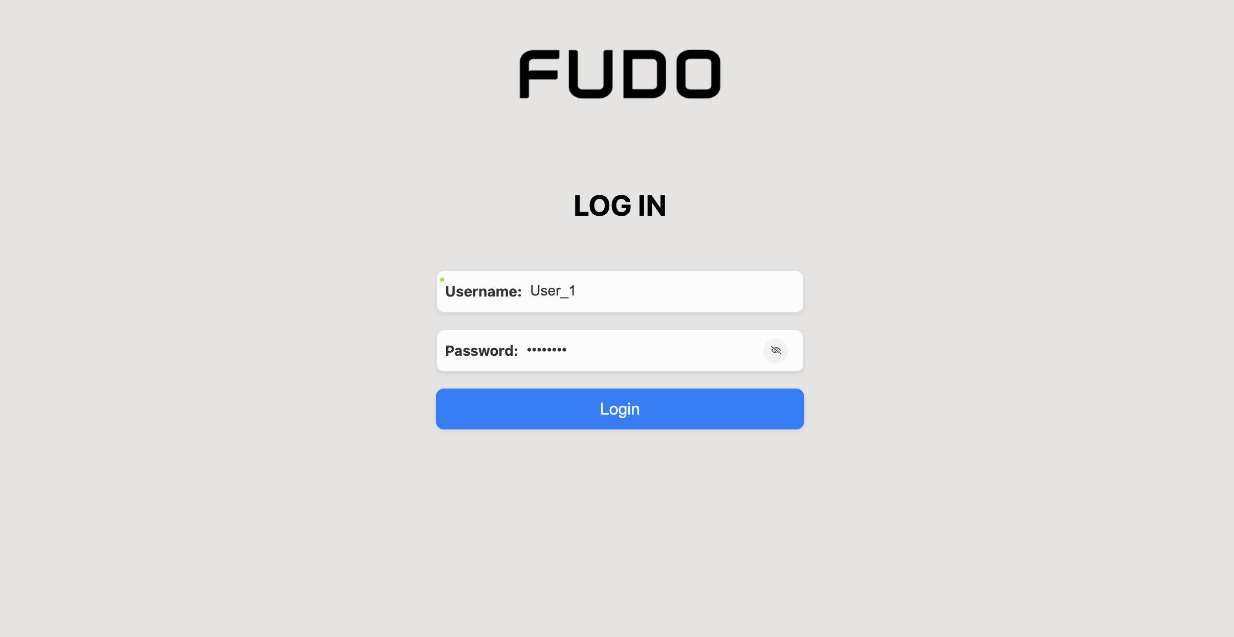 - Wprowadź nazwę użytkownika i hasło skonfigurowane podczas tworzenia użytkownika w Fudo Enterprise.