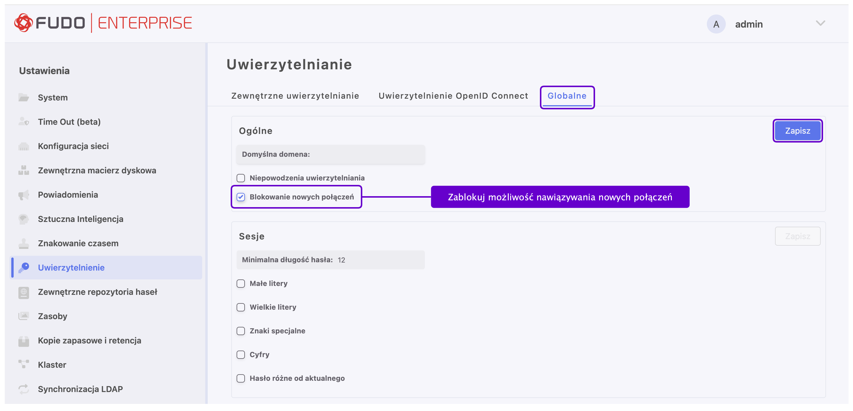 Aby włączyć opcję blokowania nowych połączeń, postępuj zgodnie z poniższą instrukcją.