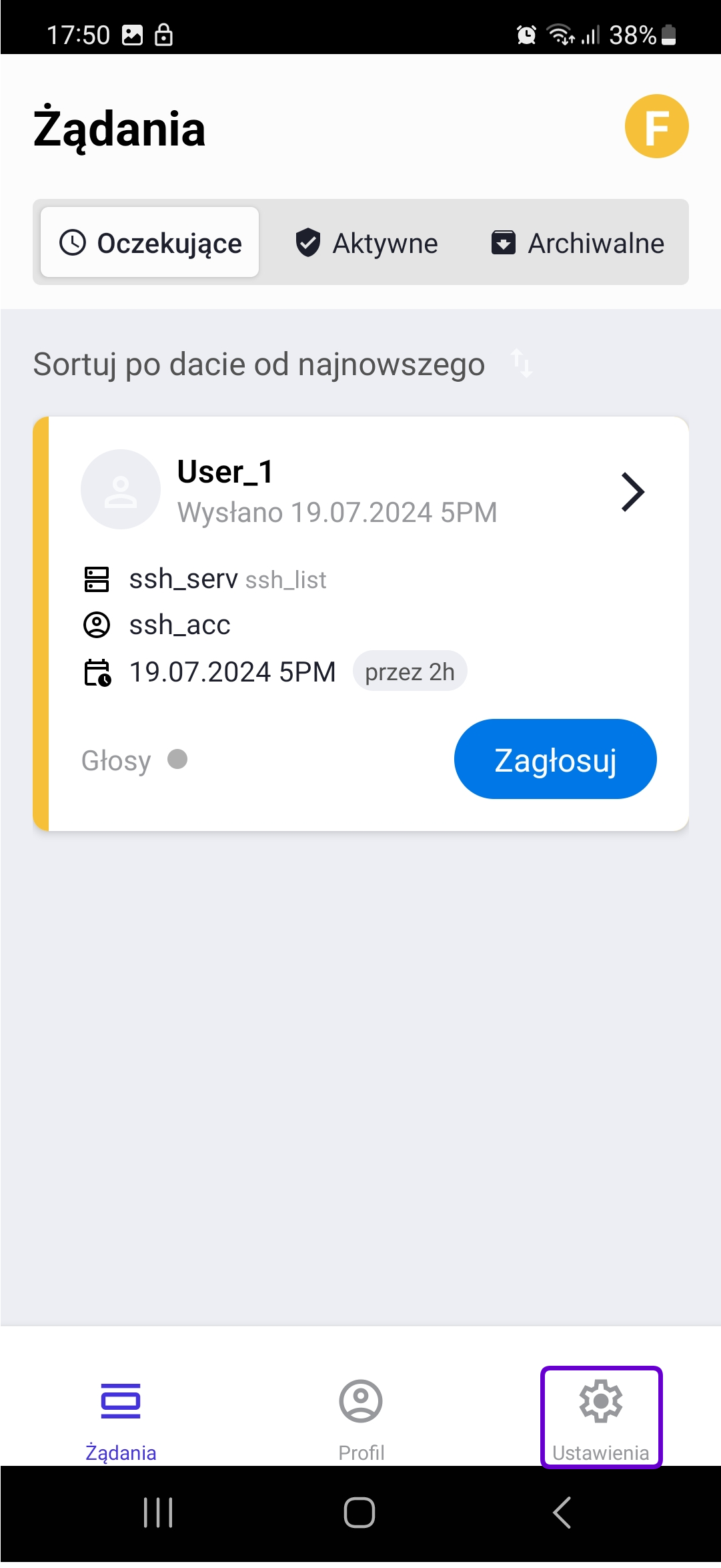 Aby uzyskać dostęp do ustawień aplikacji, wybierz ikonę koła zębatego w prawym dolnym rogu ekranu.