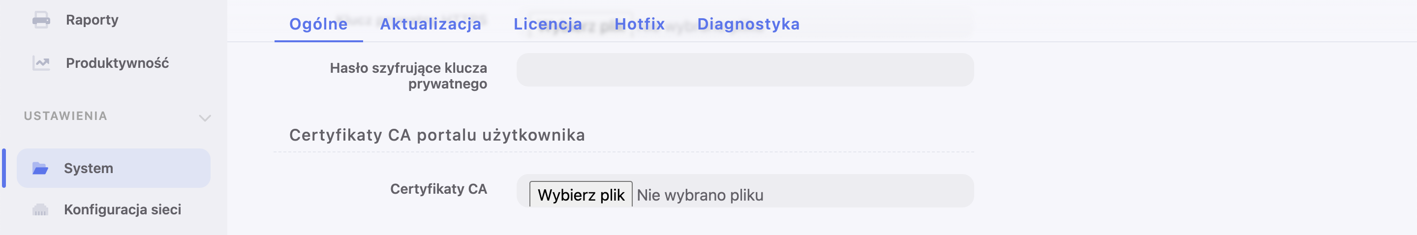 Metoda uwierzytelnienia certyfikat wymaga dodatkowego wgrania pliku z certyfikatami CA w zakładce > sekcji Ogólne.