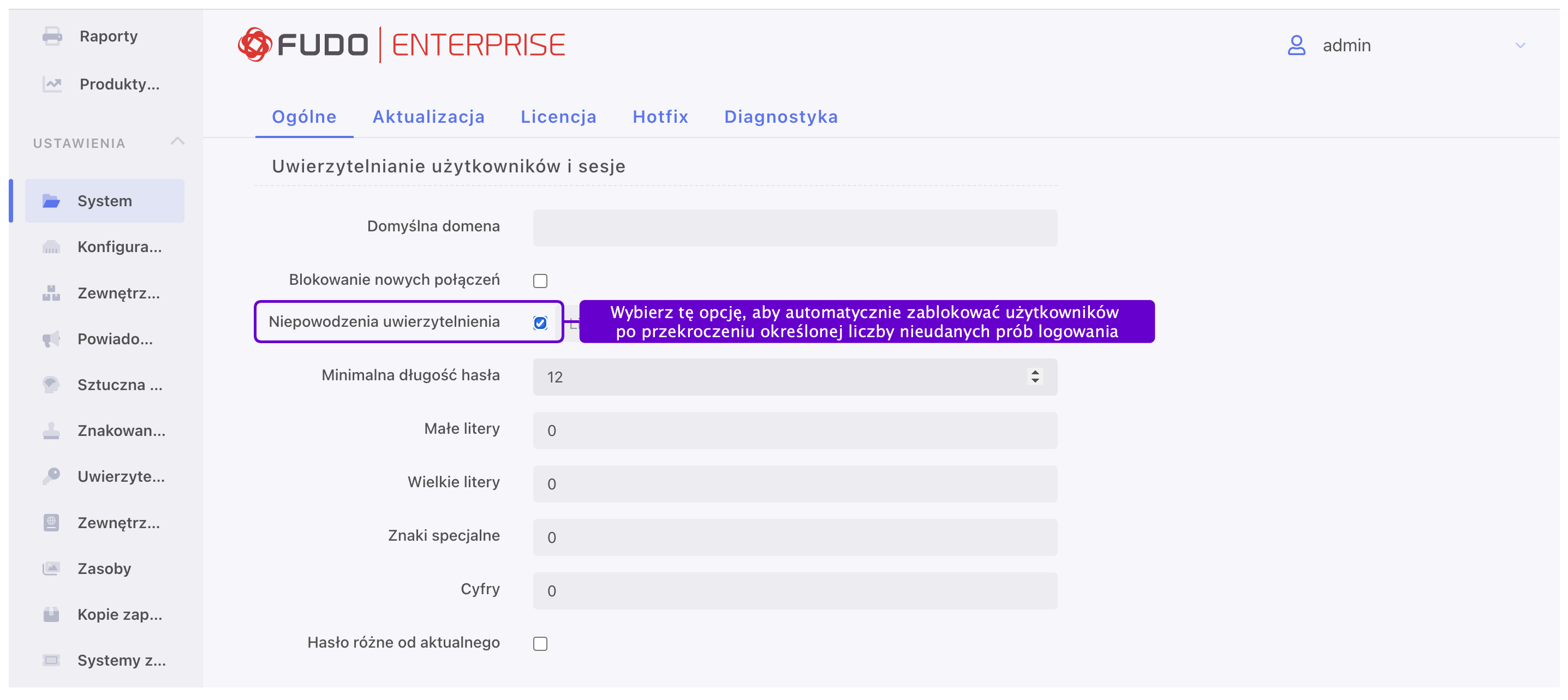 - Domena Fudo wykorzystywana jest do uwierzytelnienia użytkownika w systemie Fudo Enterprise.