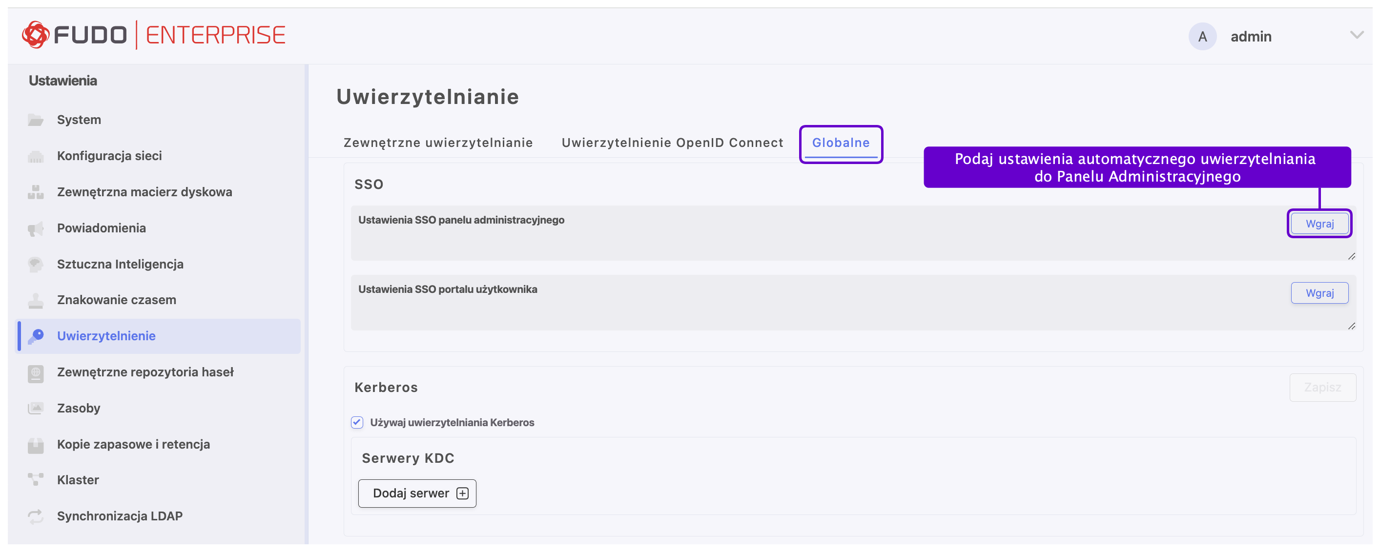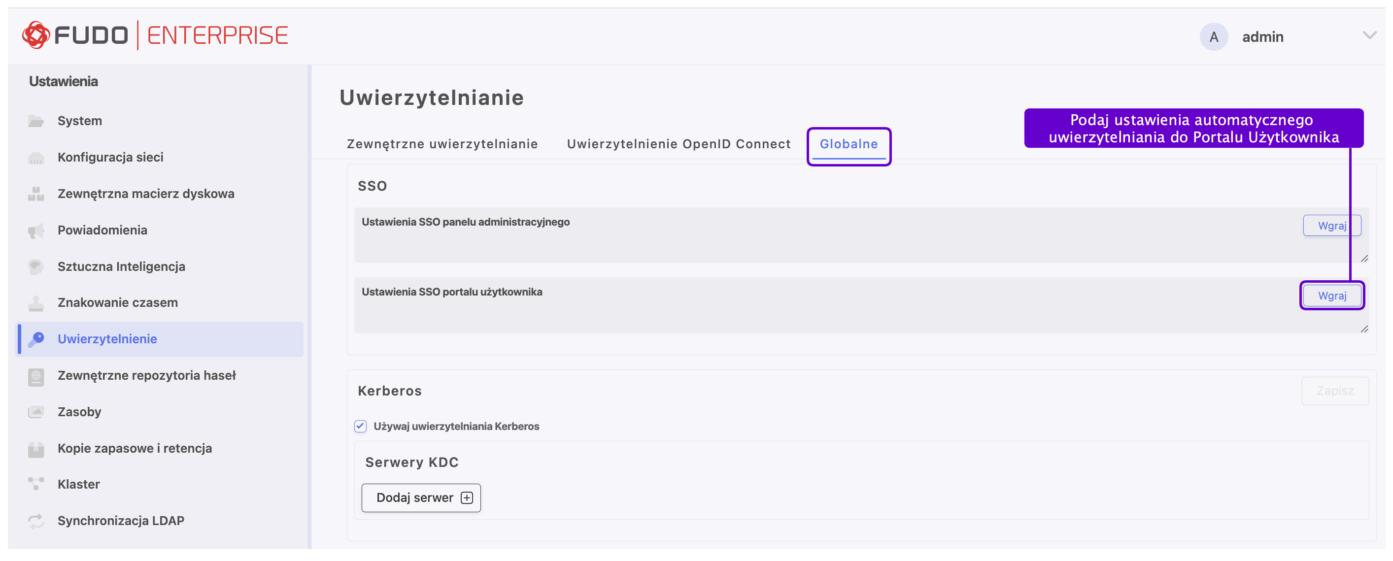 Aby zdefiniować parametry usługi SSO w ustawieniach systemu, postępuj zgodnie z instrukcjami: