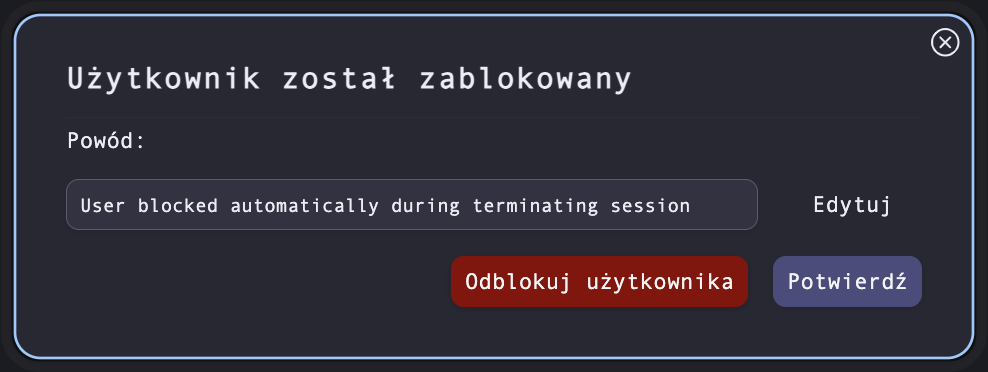 Zerwanie połączenia automatycznie blokuje danego użytkownika.