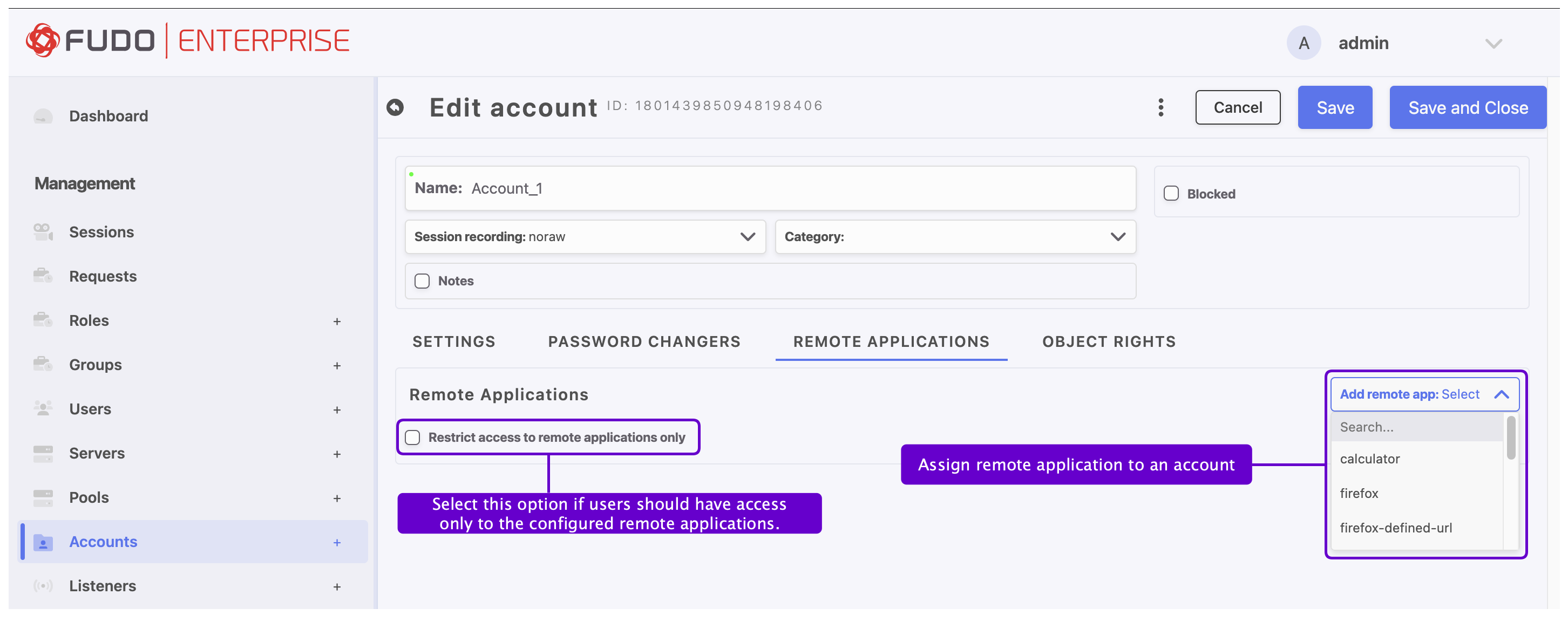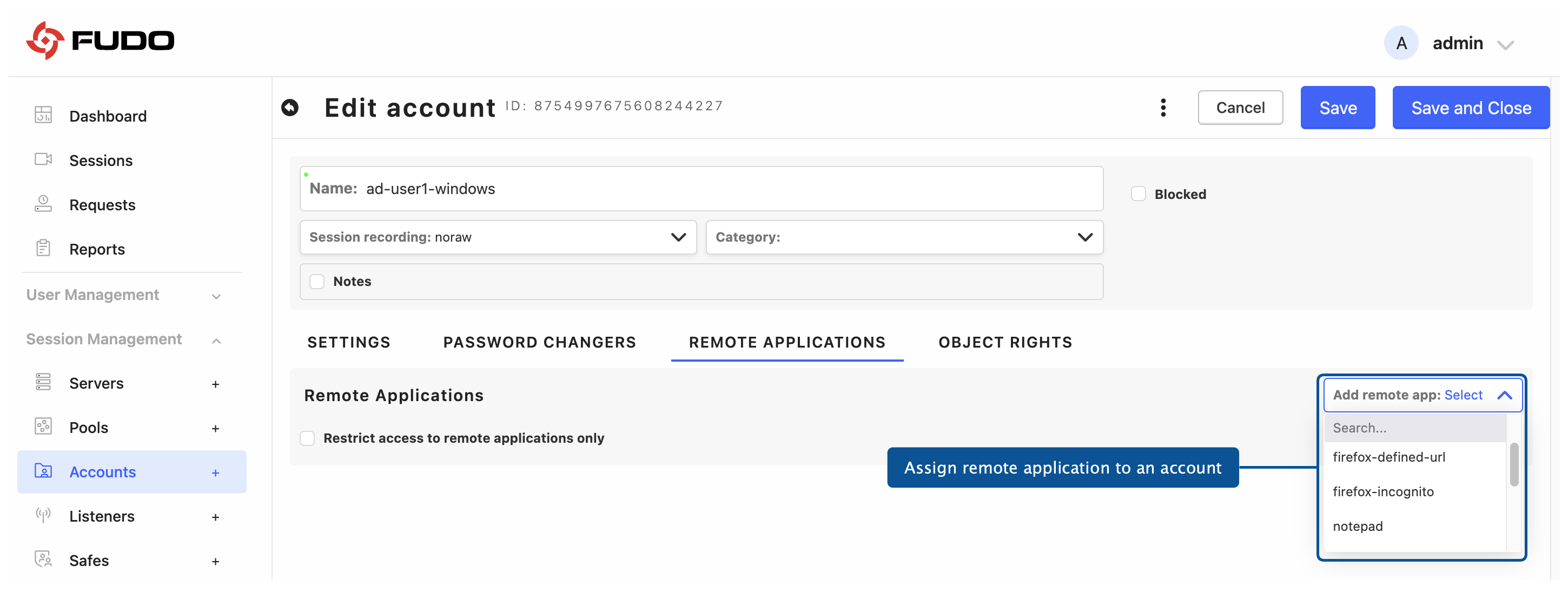 Fudo Enterprise enables direct connection over the RDP protocol to a remote application using Remote Applications feature.