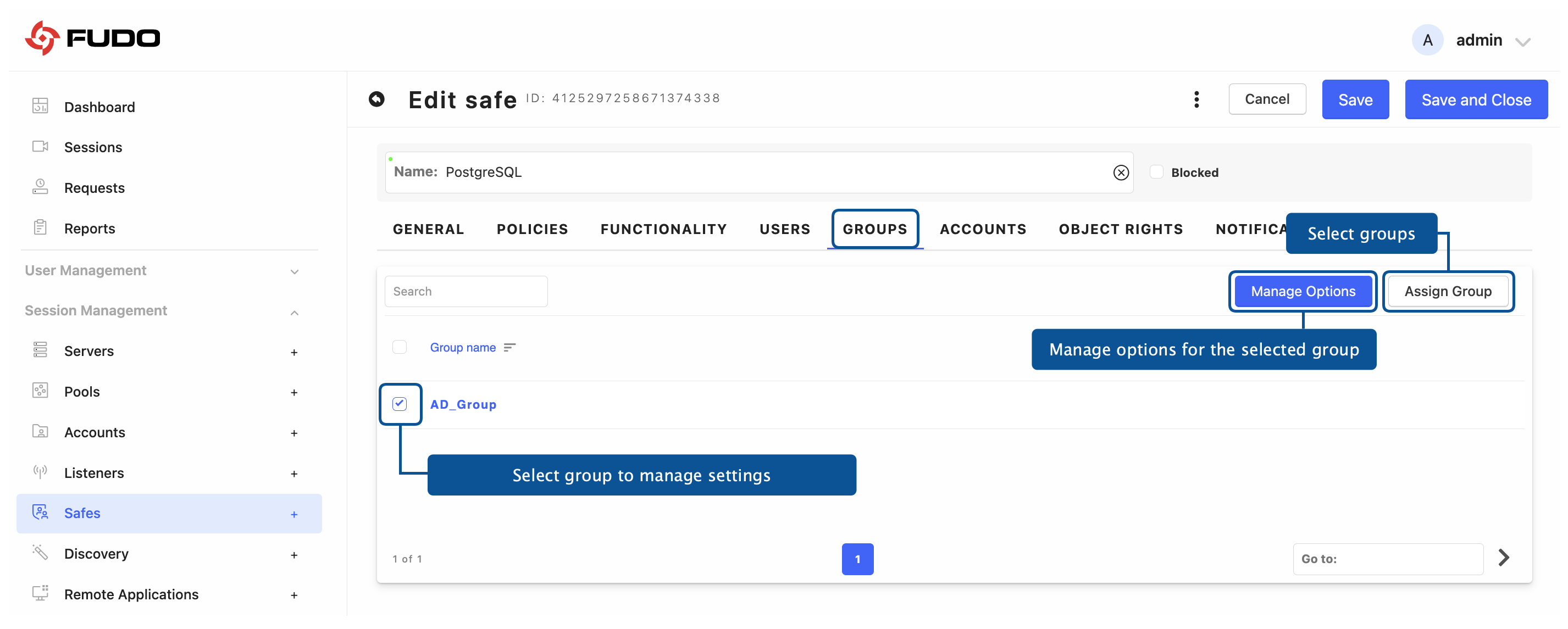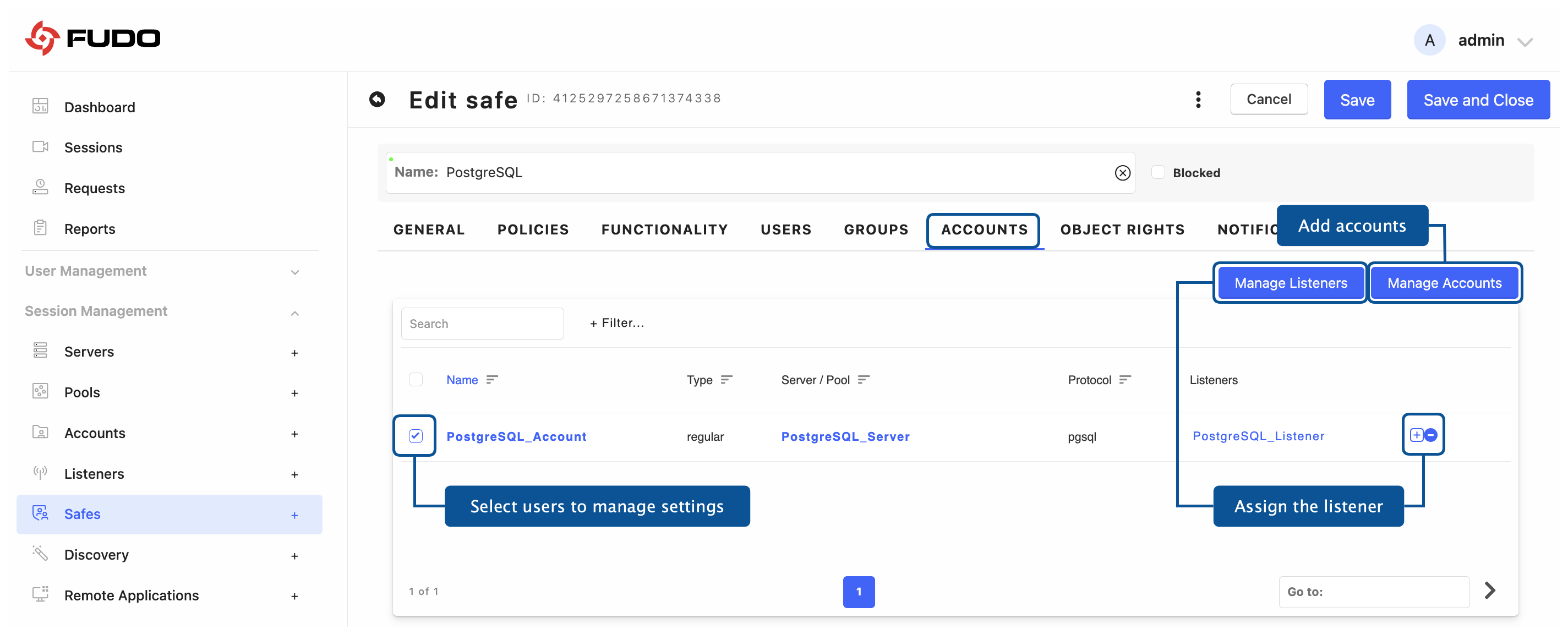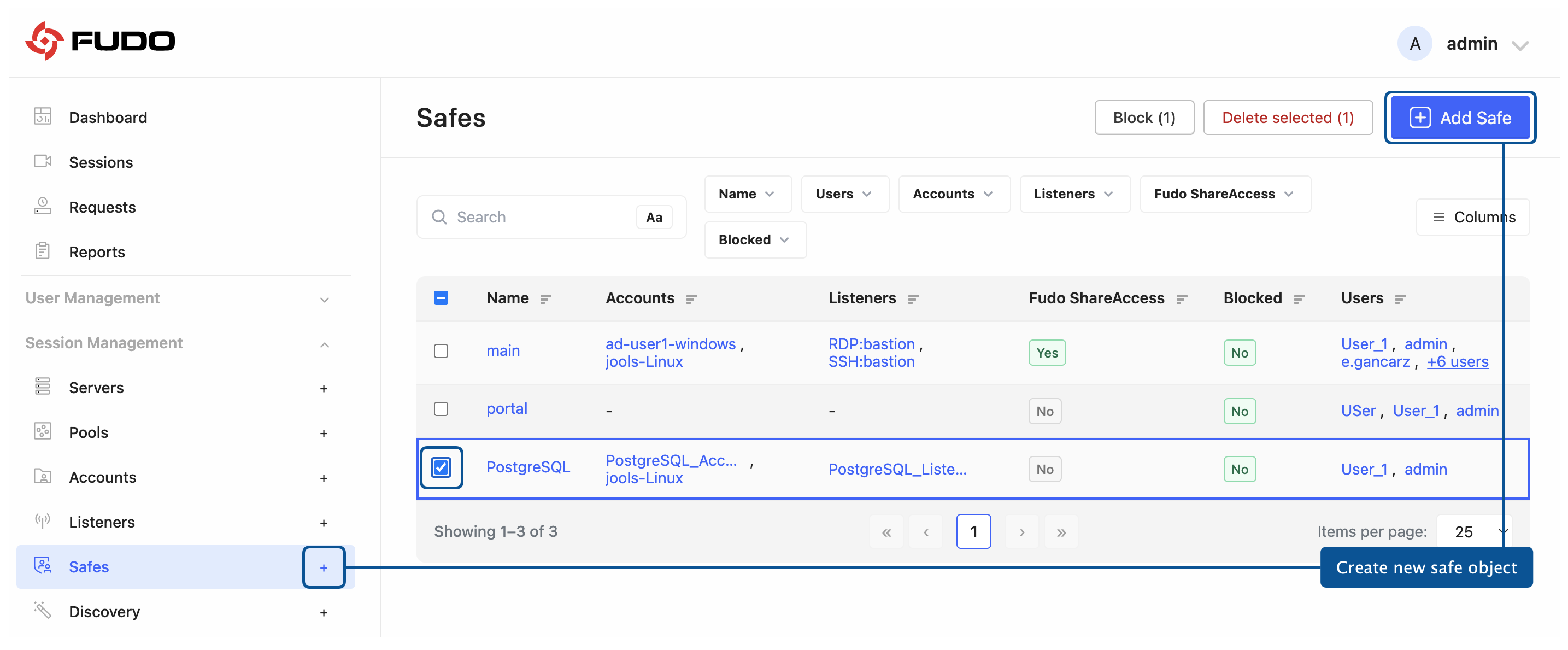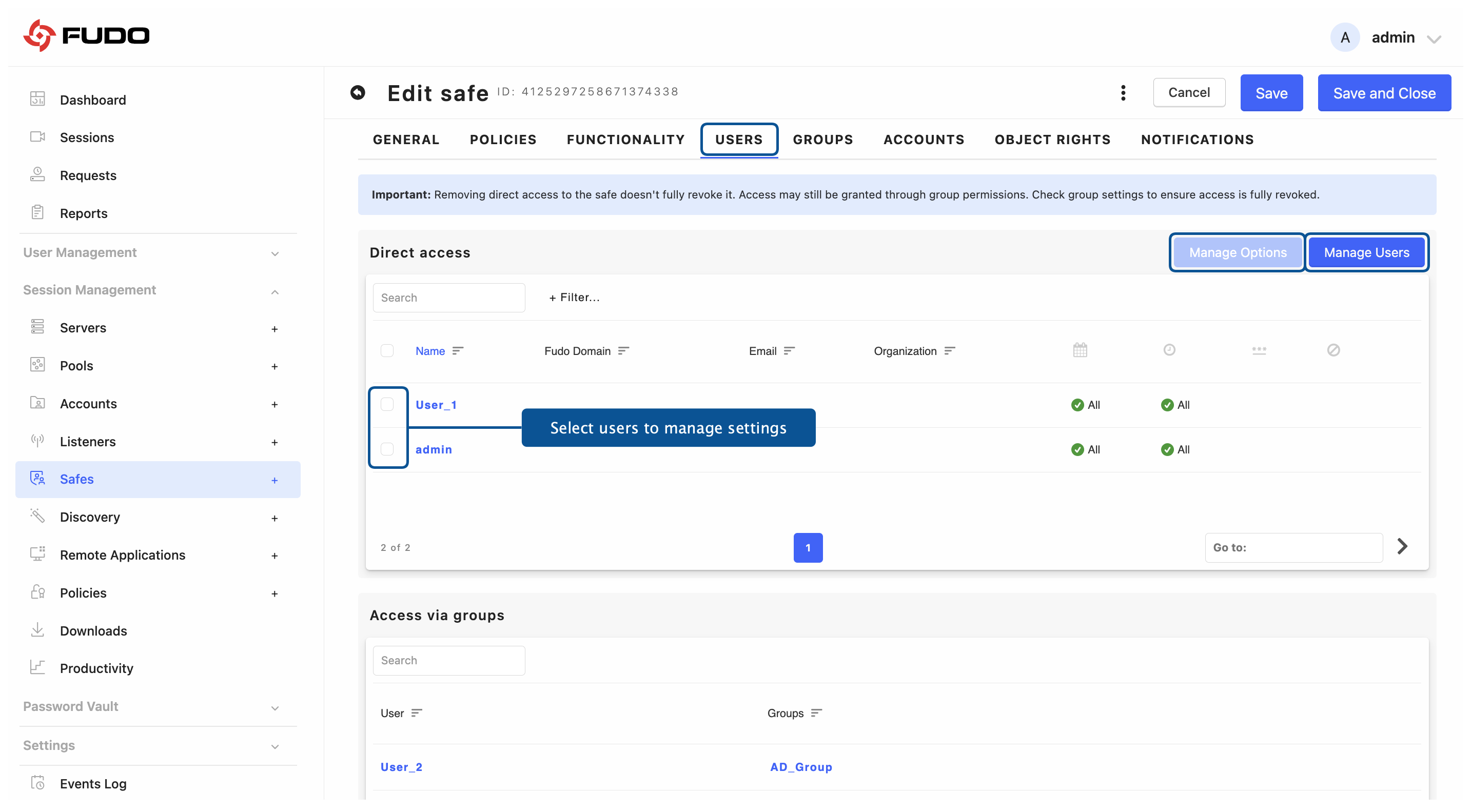 Mark the checkbox in front of the users’ names to enable their server access through the monitored safe.