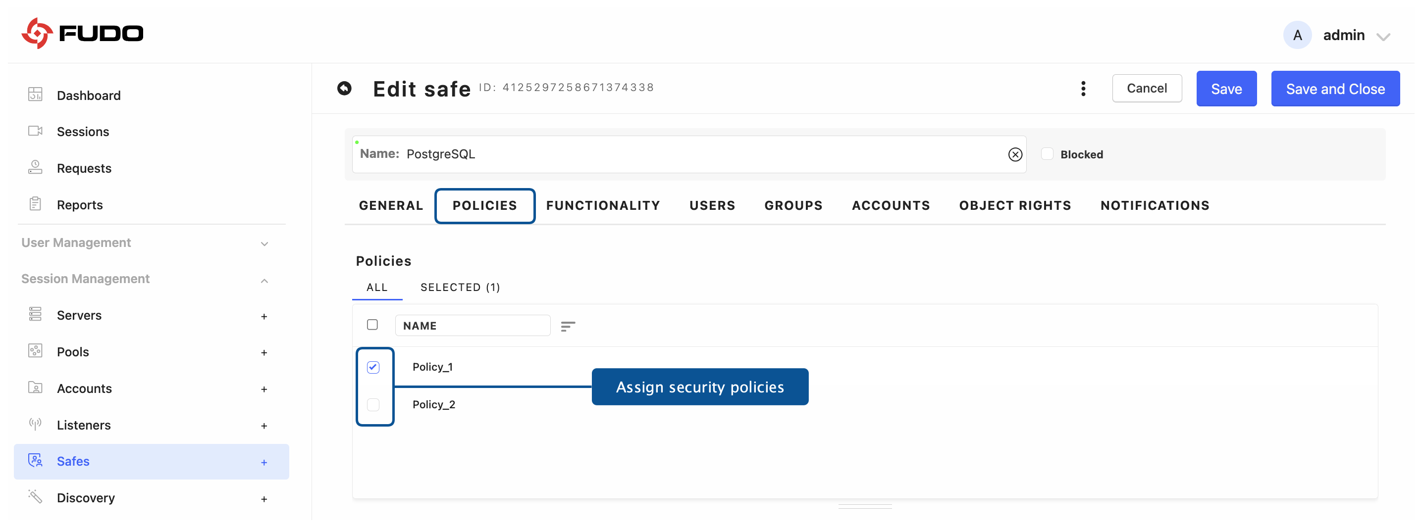 Go to the POLICIES tab, and assign desired security policies by selecting checkboxes in front of the policies names.