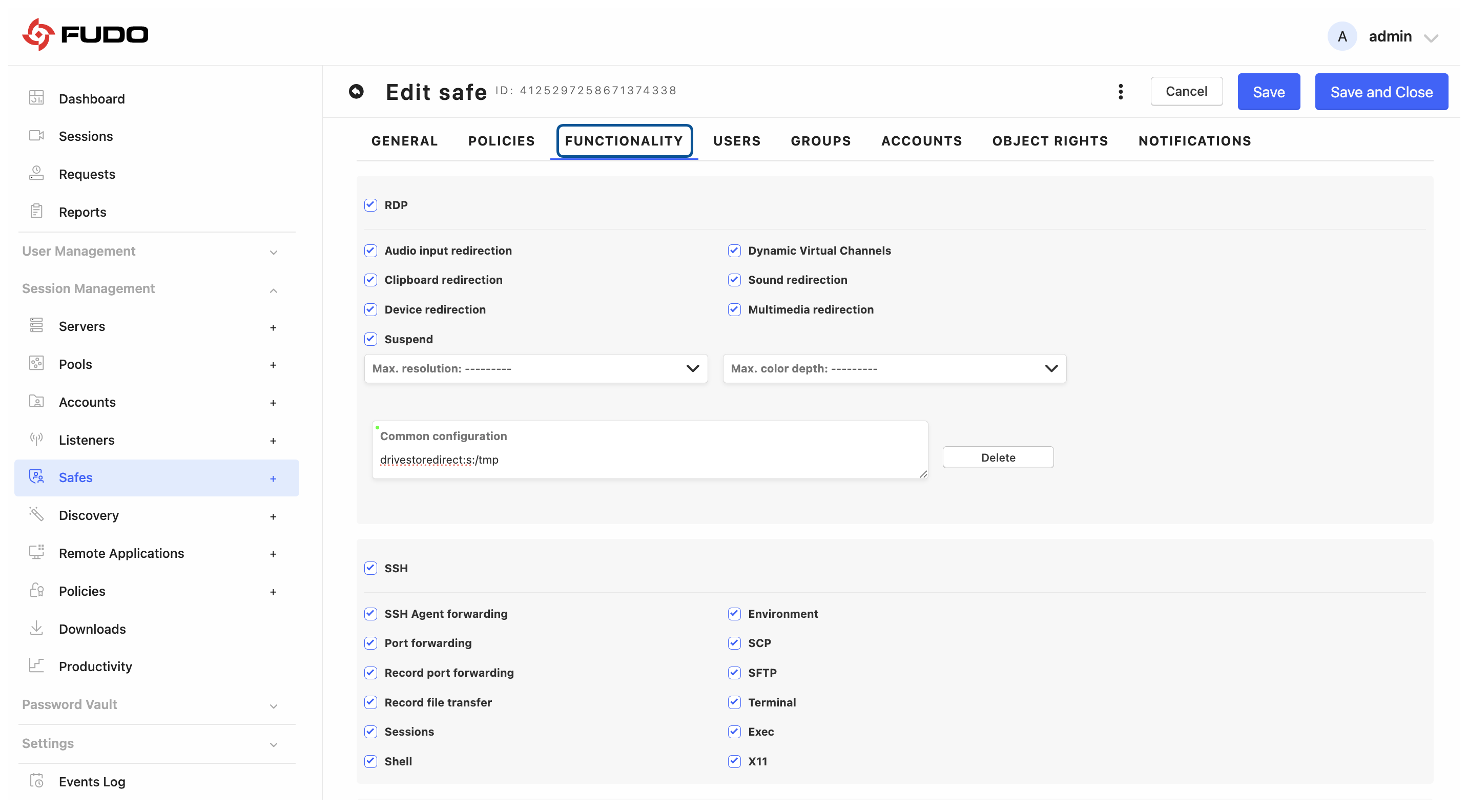 Go to the FUNCTIONALITY tab, and select allowed protocols’ features.