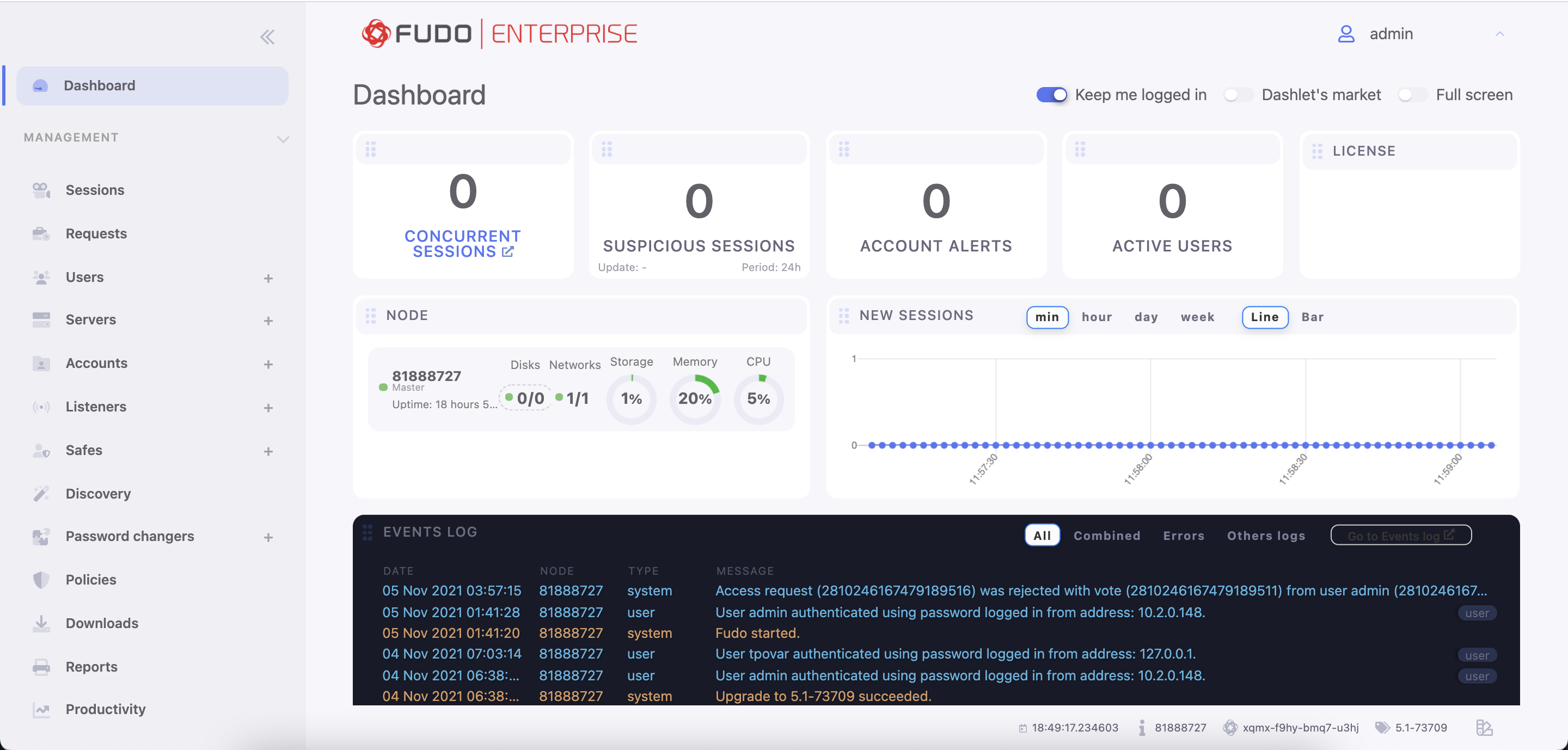 Monitoring system condition allows preventing system failures and overloads, ensuring Fudo Enterprise Fudo Enterprise remains operational.