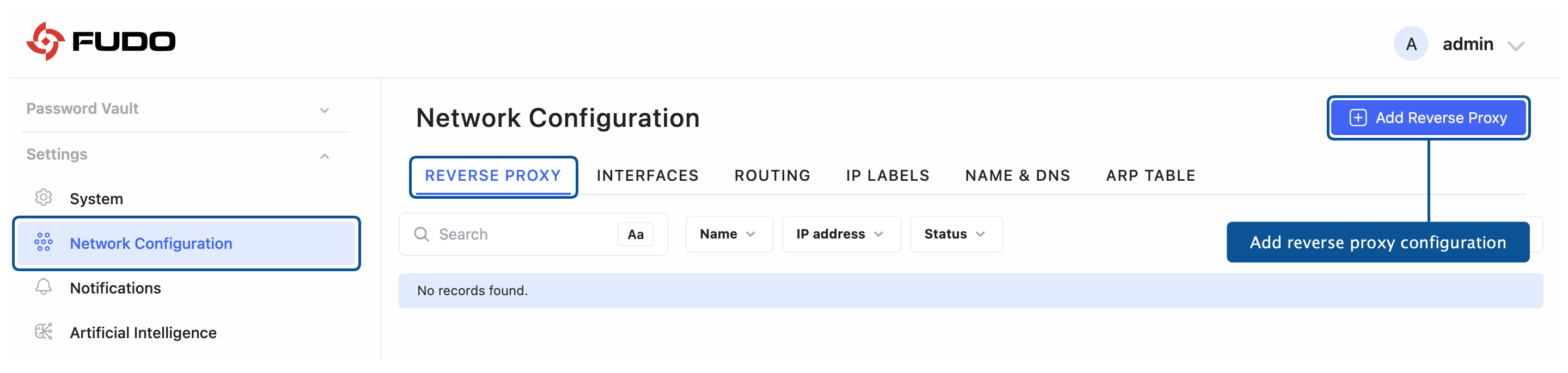 Open the REVERSE PROXY tab.