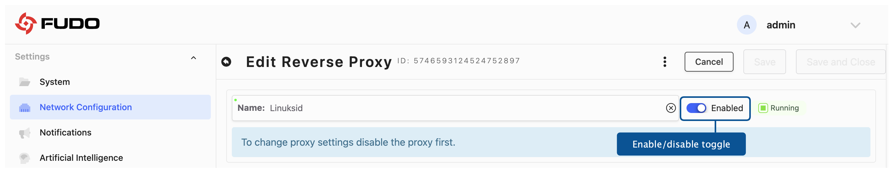 Enable the Reverse Proxy using the toggle.