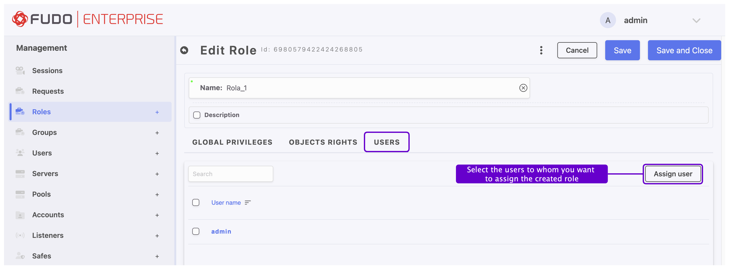 Select the users to whom you want to assign the created role.