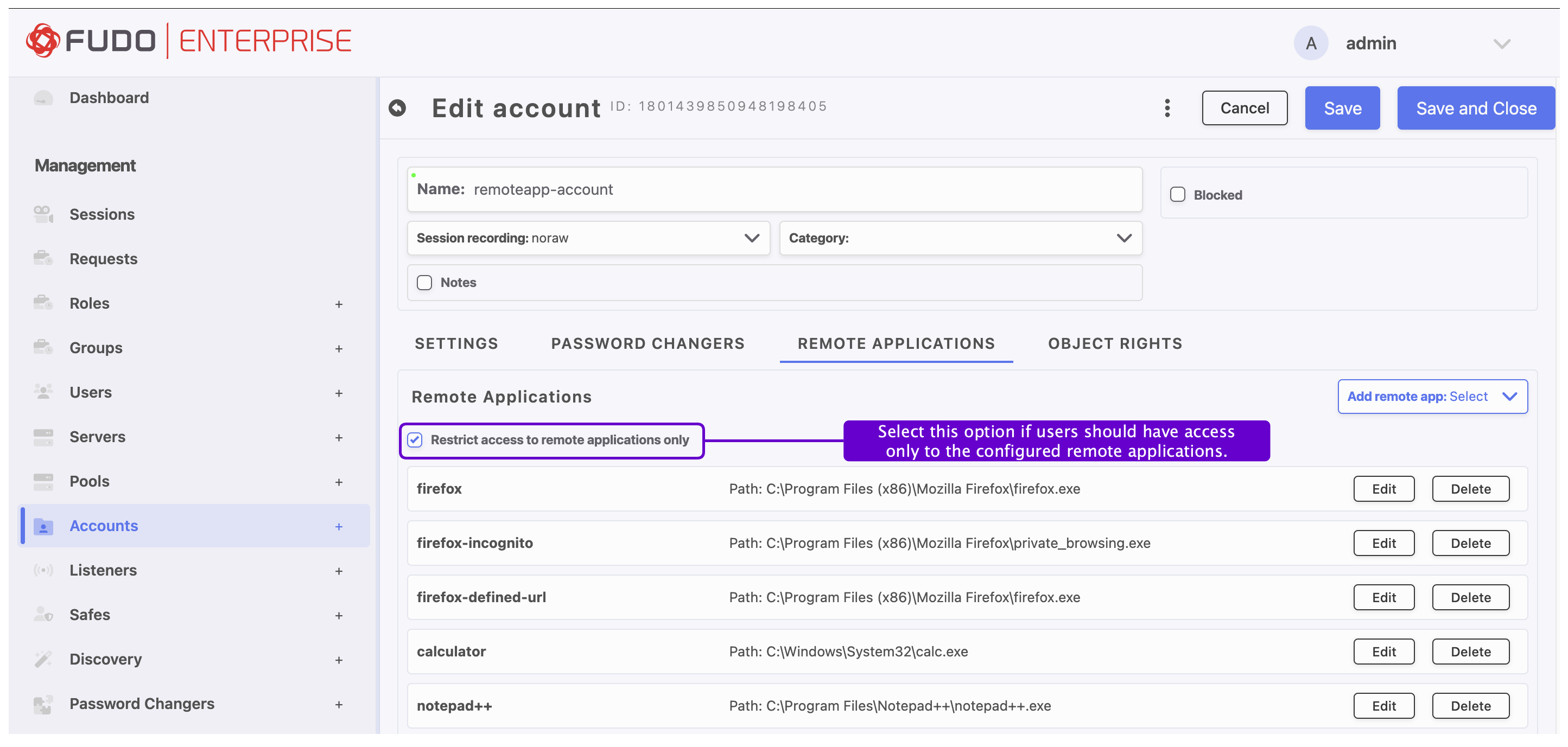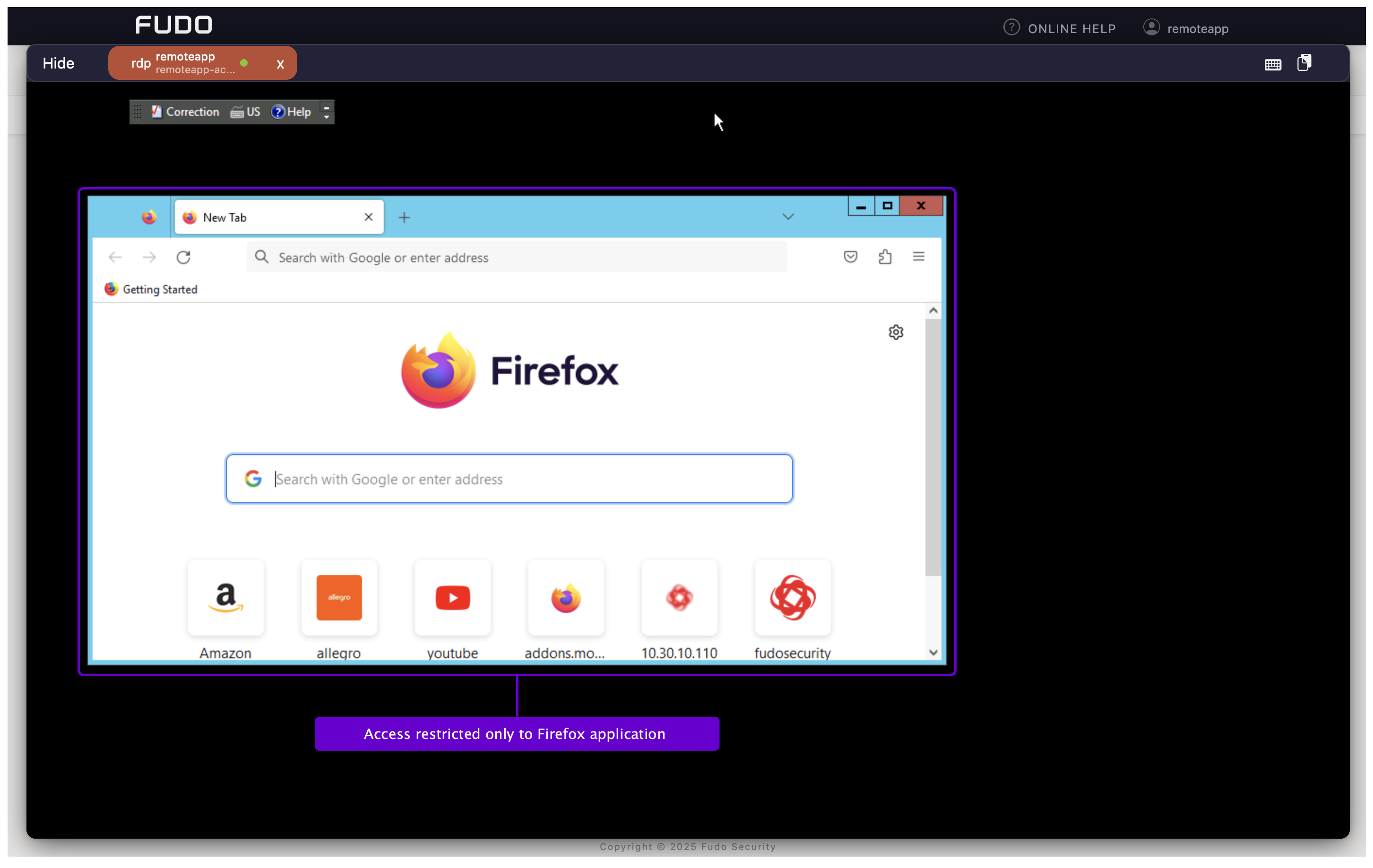 Fudo Enterprise enables direct connection over the RDP protocol to a remote application using Remote Applications feature.