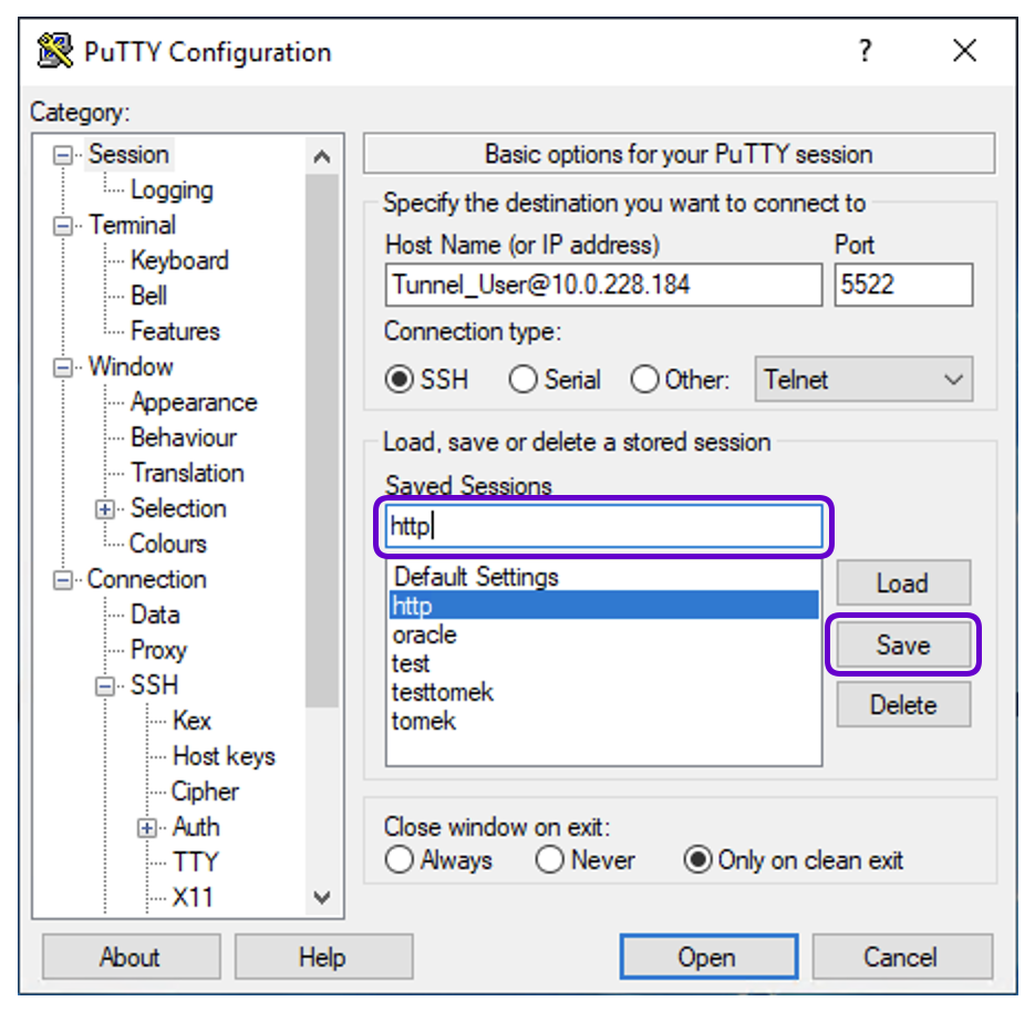 PuTTY Configuration¶