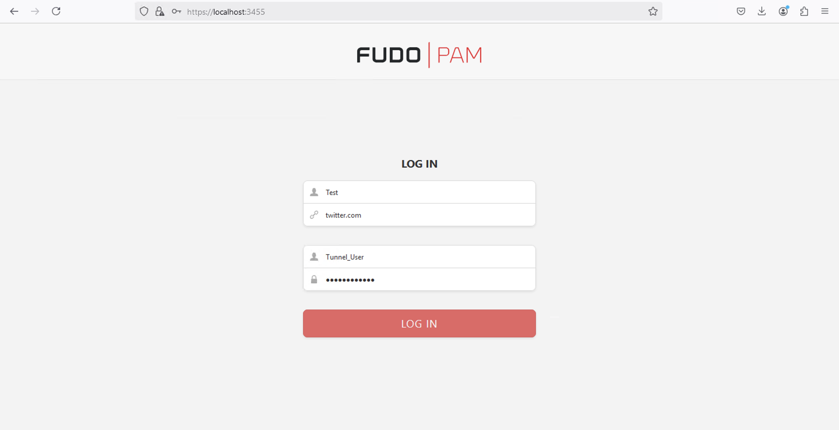 https://localhost:3455.In the Fudo login screen: