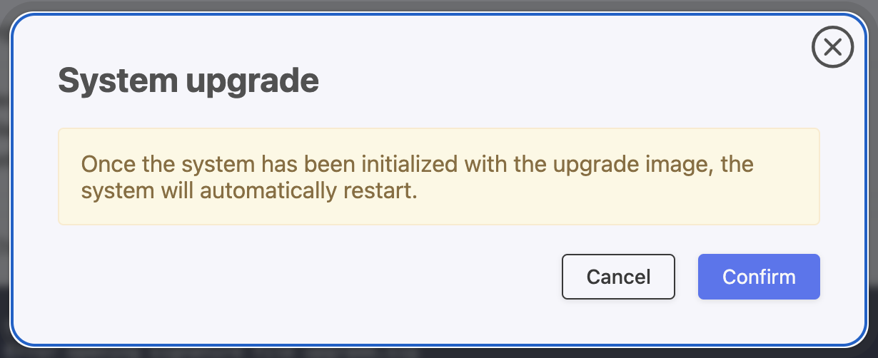 If the active version is chosen in the modal, the system will be restarted as described at the Restart page.