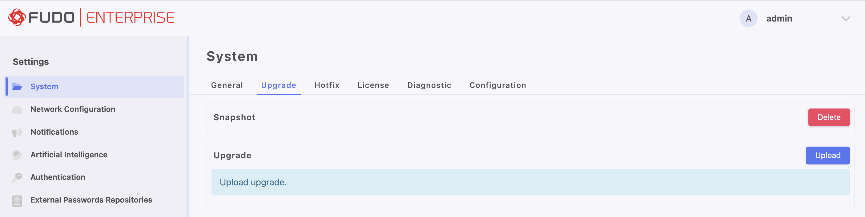 If the storage usage on the system being updated exceeds 85%, contact Fudo Enterprise technical support before proceeding with upgrading the system.