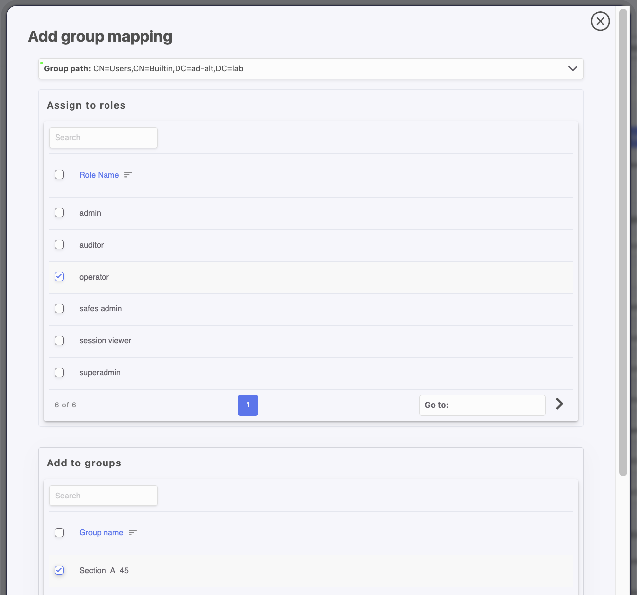 In the Group Mapping section, click to assign user groups to Fudo roles, Fudo groups, and external authentication methods.