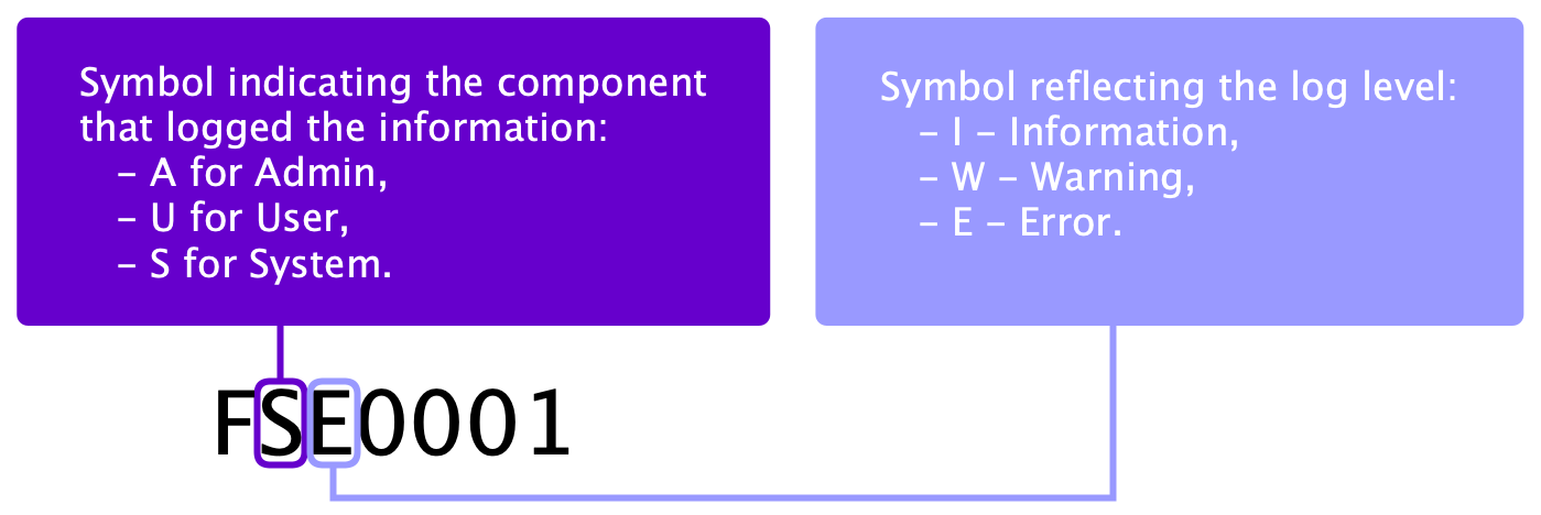 The message code provides information about the type of log message and the component that generated it.