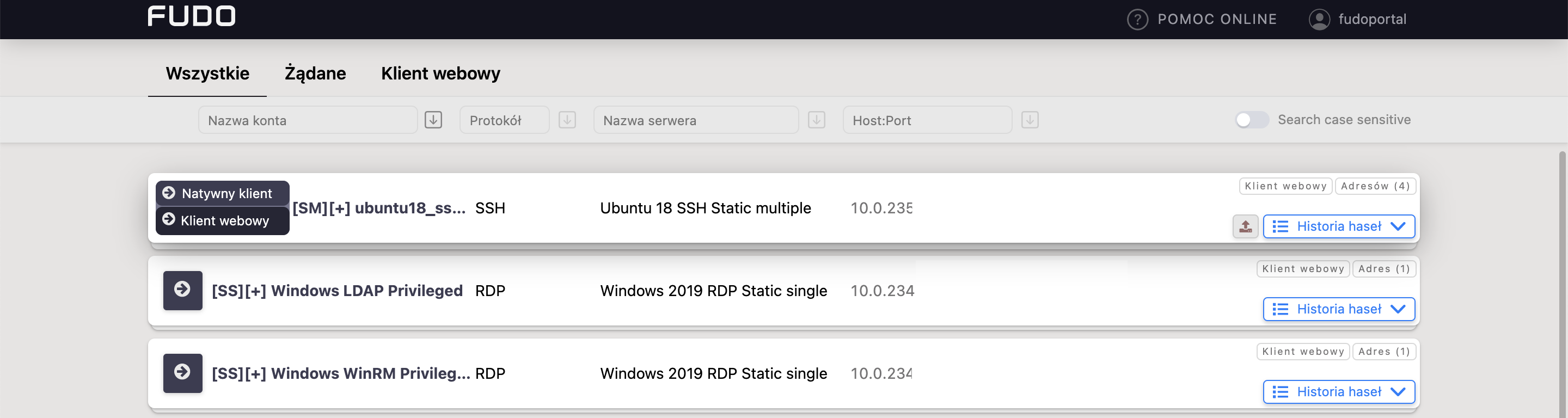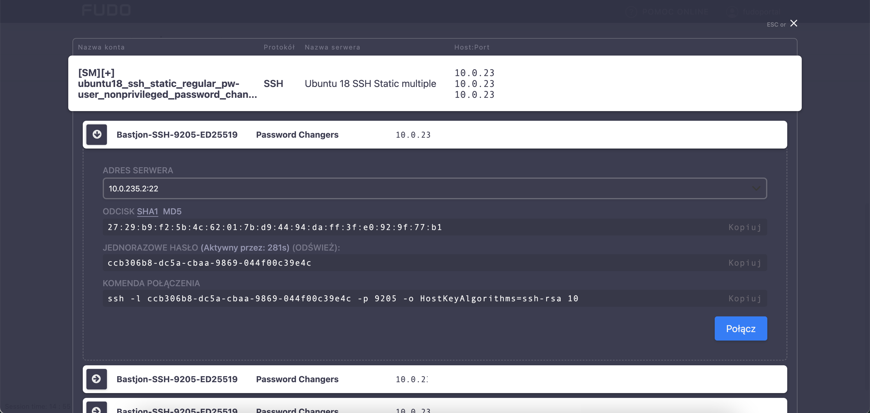 - Kliknij przycisk obok wybranego konta w celu połączenia się z serwerem docelowym.