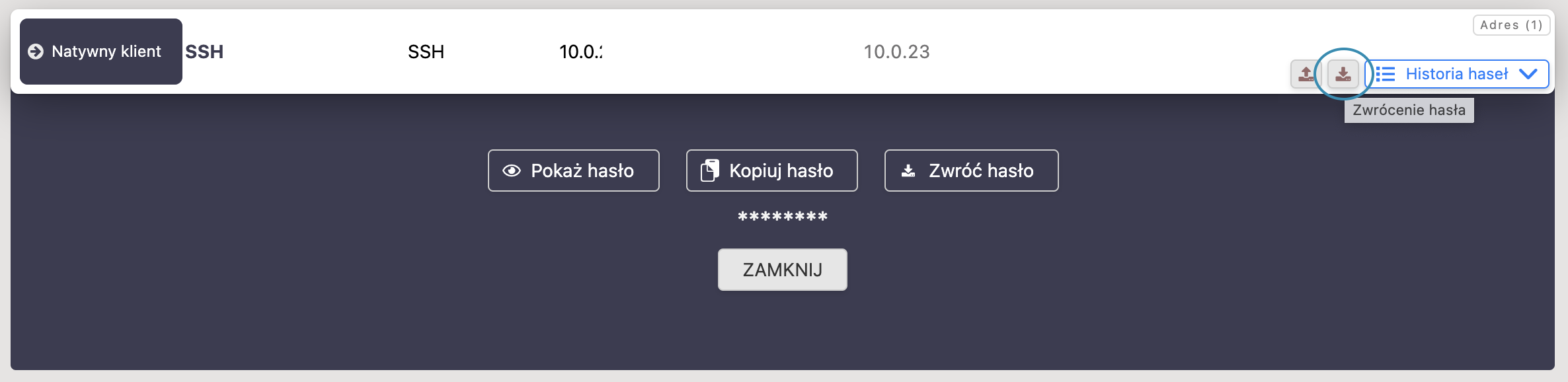 - , aby skopiować hasło do schowka.